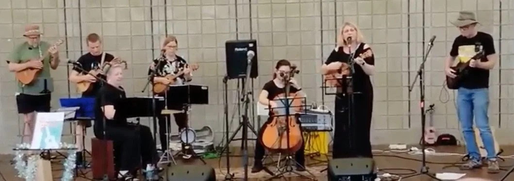 A folk-rock band with a Gungahlin twist. The New Black is known for its beautiful vocal harmonies, guitar, bass, cello and percussion... plus too many ukuleles! Why? Because they’re best known from the Ukulele is the New Black podcast. Now they’re taking their favourite covers and original songs to the stage.